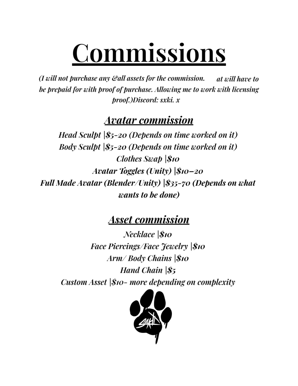 PLEASE dm on discord the information of the commission you are requesting prior to paying for the commission through here.